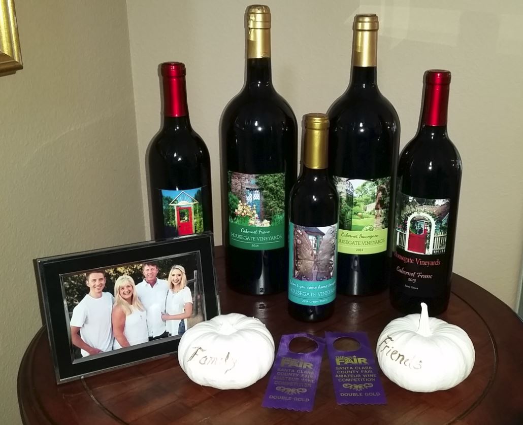 We are a small producer of Chardonnay, Cabernet Sauvignon and Cabernet Franc, and dabble in other non-estate varietals. "Housegate" is the name of a tag-like game invented by our children, who would run from the vineyard and various parts of the property to touch the front gate, before being tagged.